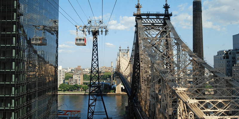 Трамвай на острове Рузвельта — это канатная дорога в Нью-Йорке, маршрут которой проходит через Ист-Ривер, соединяя остров Рузвельта с Верхним Ист-Сайдом Манхэттена. Этот трамвай был первым пригородным канатным транспортом в Северной Америке, который открыли в 1976 году. Трамвай пользуется большим спросом, ведь только за период более чем 40 лет его общий пассажиропоток составил 26 миллионов пассажиров. Далее на manhattan-future.