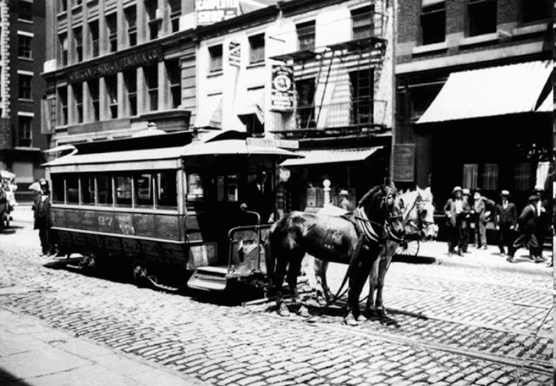 В течении многих лет жители Манхэттена искали удобный и быстрый способ для передвижения по улицам города. Один из них длительный период времени оставался доминантным – он приспосабливался к разной динамике развития зданий города и его архитектурной застройки. Таким преимущественным видом транспорта были конные перевозки, первые попытки распространения которого в городе начались еще в 1820-х годах. Позже его заменил другой общественный транспорт, который также сильно менялся с течением времени.