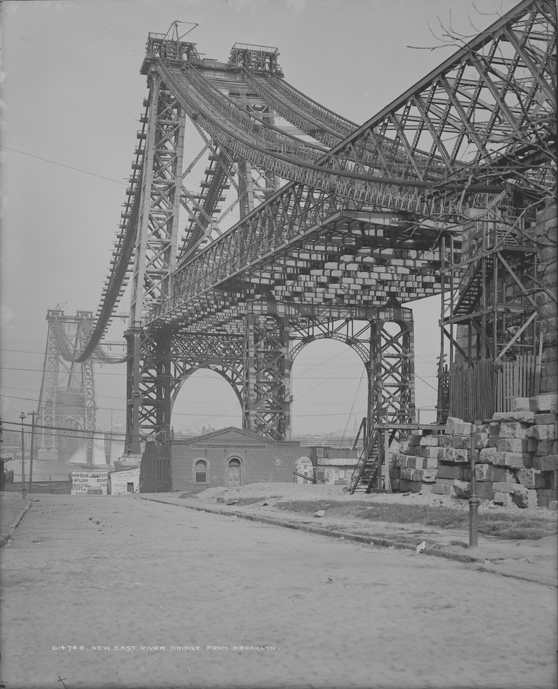 «The Williamsburg Bridge» — это подвесной мост через East River, соединяющий Нижний Ист-Сайд Манхэттена с районом Вильямсбург, что в Бруклине.